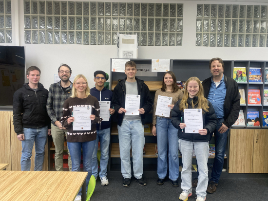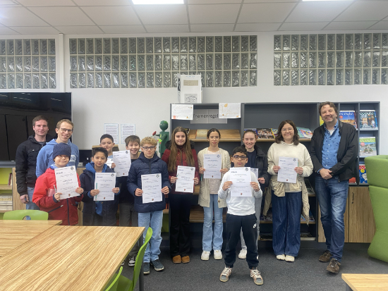 Heute fand die Siegerehrung der ersten Runde der Mathematik-Olympiade statt. Insgesamt gingen 30 Schülerinnen und Schüler der Jahrgangsstufen 5 bis 12 an den Start. 27 Teilnehmerinnen und Teilnehmer haben sich durch ihre herausragenden Ergebnisse für die zweite Runde qualifiziert.