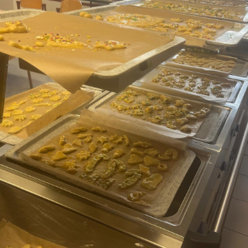 • Beim Weihnachtsbacken haben etwa 40 Fünftklässlerinnen und Fünftklässler gemeinsam Plätzchen gebacken – so viele wie noch nie zuvor.