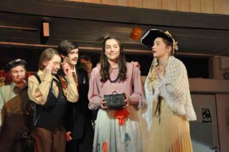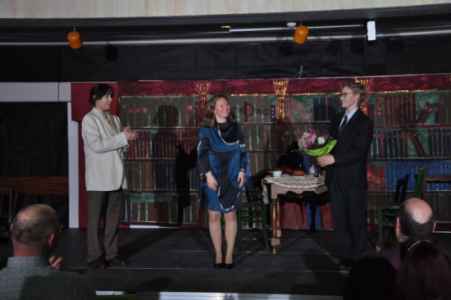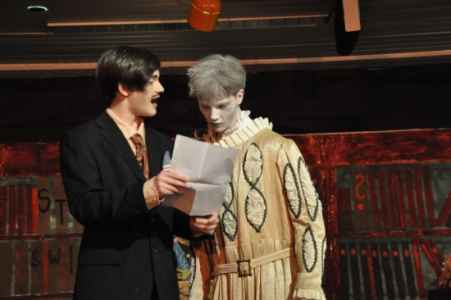 Solch ein Abend, auf den alle Beteiligten wahrlich stolz sein können, ist ohne großes Engagement nicht möglich. Dank gebührt daher der English Drama Group unter der Leitung von Fr. Gerbetz, der Masken-AG unter der Leitung von Fr. Landwehr, der Technik-AG unter der Leitung von Hr. Priesterroth, dem Schulchor unter der Leitung von Hr. Günther und Fr. Johann für das Bühnenbild.