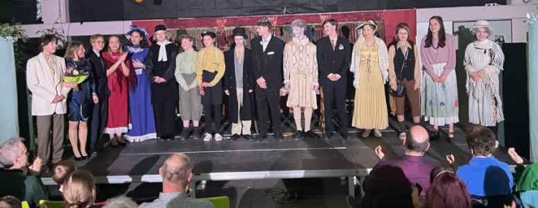 Auch der zweite Teil des Abends nach der Pause wurde vom Schulchor, dieses Mal mit „Hit the Road Jack“, eingeleitet. Mit viel Sprachwitz und Ironie präsentierten die erfahrenen Ensemblemitglieder die EGW-Version von „The Importance of Being Ernest“. Nach absurden Überraschungen und Wendungen kommt es für zwei Lebemänner anders als gedacht. Anstelle der geplanten Hochzeit sitzen die beiden am Ende des Stücks so wie am Anfang in ihren Sesseln: alleine.