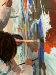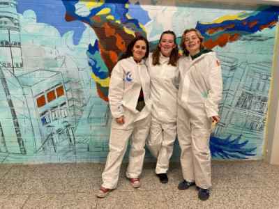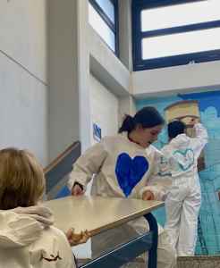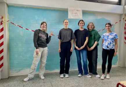 Immer wieder traf sich die AG, auch an Feiertagen, in den Weihnachtsferien, in Freistunden, um weiterzuarbeiten. Gemalt haben wir mit Acrylfarben. Auch wurden wir von einigen anderen kunstbegeisterten Schülerinnen unterstützt. Nach und nach kamen mehr Farben und Details dazu, die am Ende dieses Wunderwerk ergaben. Im Juni 2025 gaben wir unserem Bild den letzten Feinschliff, fügten die letzten Pinselstriche hinzu und alle signierten stolz das Kunstwerk.