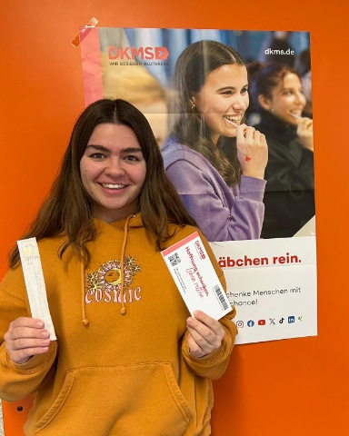 „So viel Resonanz erfahren die Registrierungsaktionen selten! Das ist wirklich besonders.“ Michelle Baier, DKMS-Volunteer und Unterstützerin der vierten DKMS-Registrierungsaktion am Europa-Gymnasium gibt sich euphorisch. Selten, so die Helferin, zeigten so viele Schülerinnen und Schüler Bereitschaft, sich für den guten Zweck bei der Deutsche Knochenmarkspenderdatei registrieren zu lassen. Baier, die seit eineinhalb Jahren im Namen der DKMS Vorträge an Schulen zum Thema Stammzellenspende hält und auch selbst schon erfolgreich für eine erkrankte Person Stammzellen gespendet hat, hilft während der Registrierungen bei den Abläufen und steht für Fragen zur Verfügung.