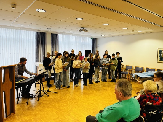 Am Dienstagnachmittag war es wieder so weit: unser Schulchor besuchte die Senioren im Pfarrer-Johann-Schiller-Haus in Wörth, um für besinnliche Vorweihnachtsstimmung zu sorgen. Neben vielen traditionellen, deutschen Weihnachtsliedern waren auch einige moderne Titel zu hören. Darüber hinaus begeisterte diesmal auch Mariela Tito Maya mit ihrem Klavierspiel. Die Senioren nahmen es dankbar an, viele sangen und klatschten begeistert mit uns mit, nicht wenige waren zu Tränen gerührt, wie uns die Leiterin der sozialen Betreuung Frau Raab sagte.
