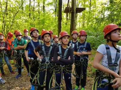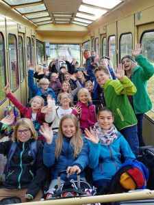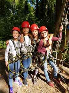 Vom 25.9. bis zum 27.9. fand die Klassenfahrt statt. Kurz zuvor waren wir noch total wütend gewesen, denn die Fahrt musste kurzfristig verschoben werden. Dann war es ein Glücksfall, denn wir hatten bestes Wetter. Die Sportschule liegt auf dem Turmberg, dorthin gelangten wir mit der Straßenbahn und der Turmbergbahn. Dort oben genossen wir erst einmal die tolle Aussicht über ganz Karlsruhe. Nach leckerem Mittagessen kam gleich ein Highlight,denn es ging in den dort gelegenen Waldseilpark, abends wurde dann noch gekegelt.