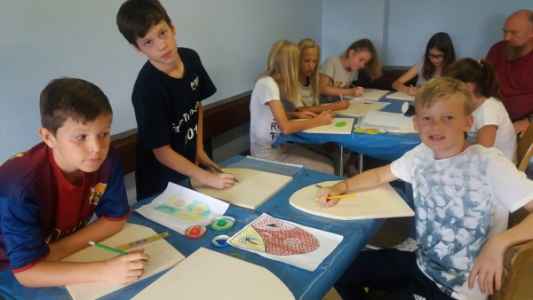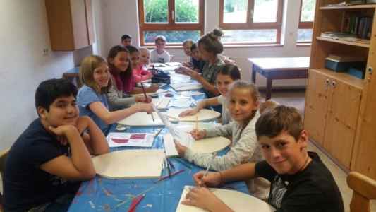 Nach der Ankunft am Montag malten wir unsere individuellen Wappen, die wir schon im Unterricht vorbereitet hatten, auf Holzschilde. Der Naturpädagoge Stefan erklärte uns danach verschiedene Kräuter und deren medizinische Verwendung im Mittelalter. Anschließend kochten wir eine mittelalterliche Suppe über dem Feuer. Für diverse Freizeitaktivitäten wie Volleyball oder Speedminton hatten wir zwischendurch Zeit und am Abend veranstalteten wir in manchen Zimmern eine kleine Party.