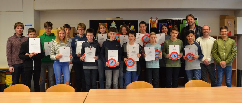 In diesem Jahr konnte das Europa-Gymnasium mit stolzen 22 Preisträgern in der Klassenstufe 8 überzeugen. Mit freundlicher Unterstützung unseres Freundeskreises sowie dem Universum-City-Kino Karlsruhe wurden die Leistungen der Gewinner mit einer kleinen Aufmerksamkeit prämiert.
