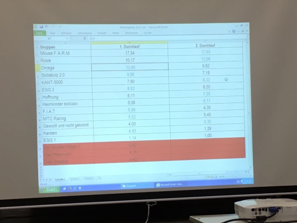Nachdem den Schülern des EGW im zweiten Durchlauf eine weitere Steigerung der Reichweite auf 17,98 m gelang und damit der endgültige Vorsprung von mehr als 5 Metern auf die Konkurrenz fest stand, fiel die Anspannung des Wettbewerbs ab und mündete in eine ausgelassene Siegerstimmung.