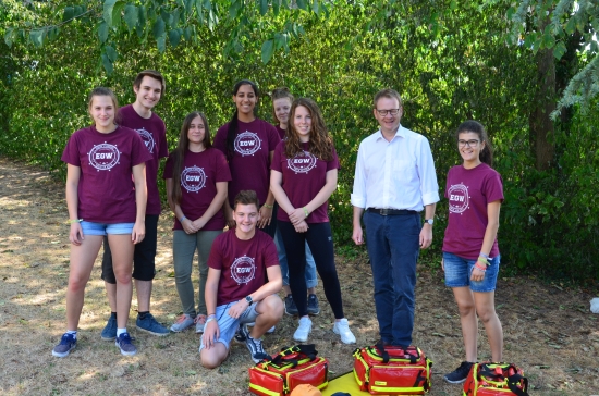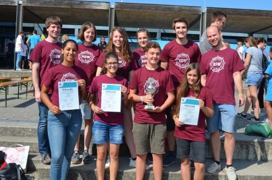 In der Stufe „Schulsanitätsdienst“ siegte unser Team mit dem Gruppennamen „SEGW“ mit Charlotte Balzer, Victoria Boltz, Catarina Ciani, Fabienne Fahrentholz, Julius Nagel, Robin Neumann, Valeria Schmitt und Aylin Serbest unter der Betreuung von Herrn Heinzler und Herrn Holländer in den Bereichen Erste-Hilfe, Rotkreuz und Sport und Spiel.