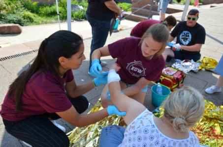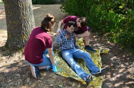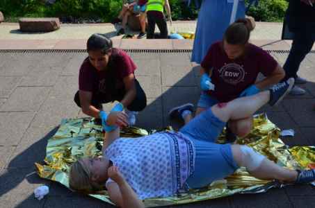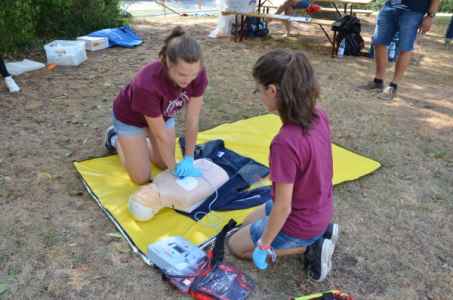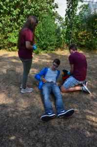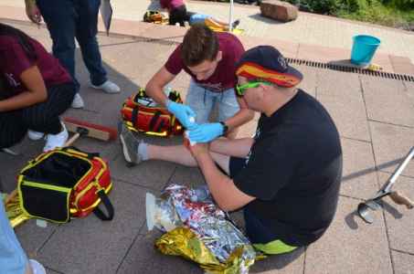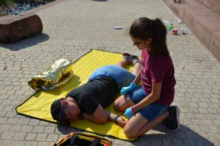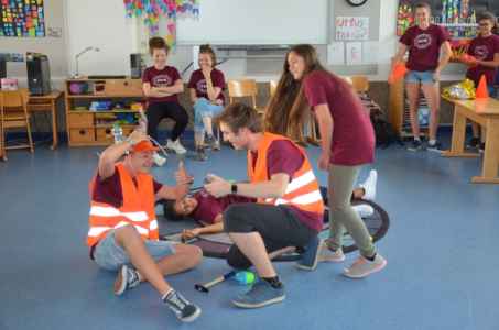 Insgesamt gab es sechs Stationen zu meistern. An der Station "Erste-Hilfe-Gruppe" galt es drei Verletzte zu versorgen: Eine bewusstlose Person mit Schädelbasisbruch und zwei Personen mit jeweils einer stark blutenden Wunde. Bei der Station "Erste-Hilfe-Einzel" gab es einen Herzinfarkt und eine Wiederbelebung zu meistern. Im Musisch-Kulturellen-Bereich musste eine Geschichte weiter erzählt werden. Bei der Station "Rotkreuz" sollten Vorurteile von Frauen und Männern entsprechend zugeordnet und jeweils ein Gegenbeispiel gefunden werden. Nach einem abwechslungsreichen Tag fieberten wir der Siegerehrung entgegen, die am nächsten Tag stattfand.