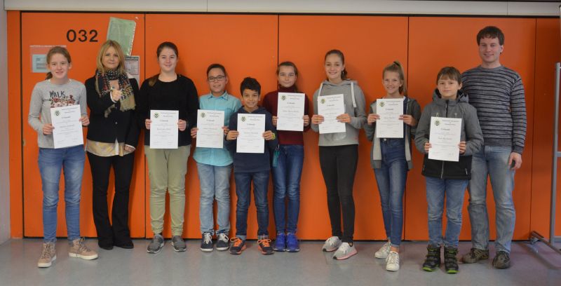 Das waren Anna Becht (5g), Yassin Cherfouf (5g), Tom Bacherle (6f), Anna Stieber (7f), Annika Schmidt (7f), Bastienne Boltz (7f), Jonas Hardardt (7f), und Lara Schwarz (8e). Allen erfolgreichen Teilnehmern gratulieren wir herzlich! Wir drücken euch die Daumen für die nächste Runde!!!