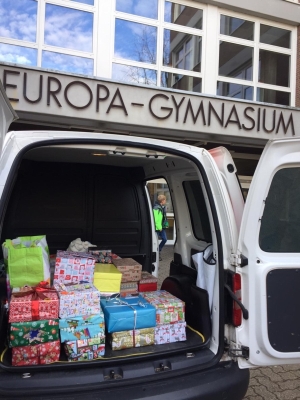 Des Weiteren sollte nicht in den Hintergrund treten, dass Weihnachten die Zeit des Schenkens ist. Viele Klassen beteiligten sich an der Aktion „Weihnachten im Schuhkarton“, die in Kooperation mit der Wörther Tafel alljährlich durchgeführt wird. So konnten wir mit über 30 Kartons Kinder verschiedener Altersstufen aus der Region glücklich machen konnten.