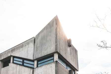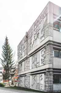 Der MSS-Bau unserer Schule wurde im „brutalistischen“ Stil der 1970er Jahre gebaut, erkennbar am sichtbaren rohen Beton. Das Gebäude erhält von außen etwas Dynamik durch eine dekorative Spitze auf dem Dach.