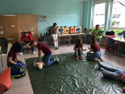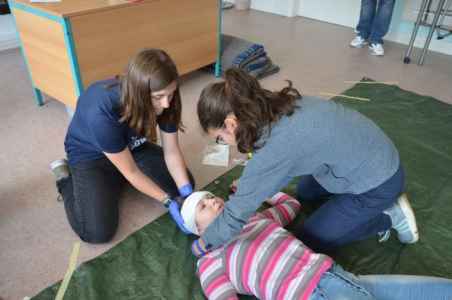 Zwei Stationen beschäftigten sich mit Erste-Hilfe-Wissen. An den anderen Stationen ging es um soziales Engagement, musisch-kulturelle Fähigkeiten und Rotkreuz-Wissen.