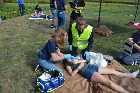 Über 400 Schülerinnen und Schüler aus ganz Rheinland-Pfalz reisten vom 23.08.19 bis 25.08.19 nach Wörth. Anlass war der diesjährige JRK Landeswettbewerb, der in diesem Jahr an unserer Schule stattfand. Insgesamt starteten die besten 27 Mannschaften aus Rheinland-Pfalz, die sich in ihrem Bezirksverband qualifiziert haben. Auch unsere Schulsanitäter waren nach ihrem erfolgreichen Ergebnis auf Bezirksebene wieder dabei und hatten somit ein Heimspiel.
