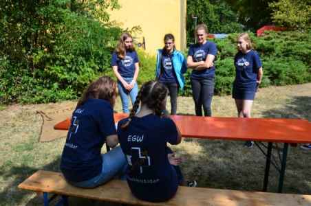Unsere Schulsanitäter zeigten sich bei diesem Wettbewerb zum ersten Mal in ihren brandneuen EGW-Sani-Shirts mit unserem neuen Logo auf der Rückseite. An dieser Stelle nochmals herzlichen Dank an Valeria Schmitt für das Entwerfen des Logos.