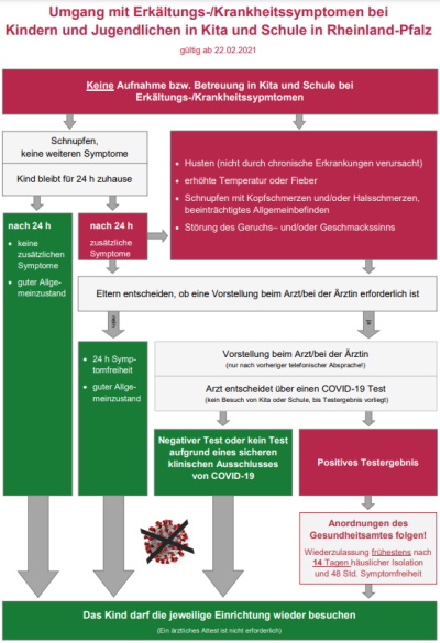 Unter Berücksichtigung der aktuellen Infektionslage wurde das Informationsblatt zum Umgang mit Erkältungs- und Krankheitssymptomen des Ministeriums aktualisiert. Wir bitten um Beachtung der gültigen Fassung.