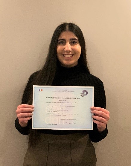 Besonderer Dank gilt Kenza Cherfouf (MSS 11), die nach erfolgreichem Ablegen der B1 und B2-Prüfung die Vorbereitung des Prüfungsjahrgangs 2020 im Rahmen der DELF-AG aktiv unterstützt hat. Künftigen Jahrgängen gibt Eliz Bekmez mit auf den Weg: „Wer seine Französischkenntnisse mit einem lebenslang gültigen Zertifikat unter Beweis stellen möchte, ist im DELF-Vorbereitungskurs genau richtig!“