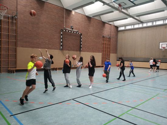 Neben den grundlegenden Regeln im Basketball wurde auf der Multifunktionsanlage des EGW gedribbelt, gepasst und gespielt. Freiwürfe wurden genauso trainiert wie der Korbleger. Am Ende des Schuljahres wurde es Ernst – das Spielabzeichen Bronze im Basketball konnte erfolgreich von allen Schülerinnen und Schülern abgelegt werden.