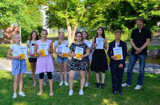 Zum Ende des Schuljahres wurden von Herrn Dr. Hauptmann traditionell die Leistungspreise überreicht. Dank der Stiftung des ehemaligen Direktors unserer Schule, Herrn Rößler, erhalten die jeweils besten Schülerinnen und Schüler eines Jahrgangs diese Auszeichnung für ihre herausragenden Leistungen.