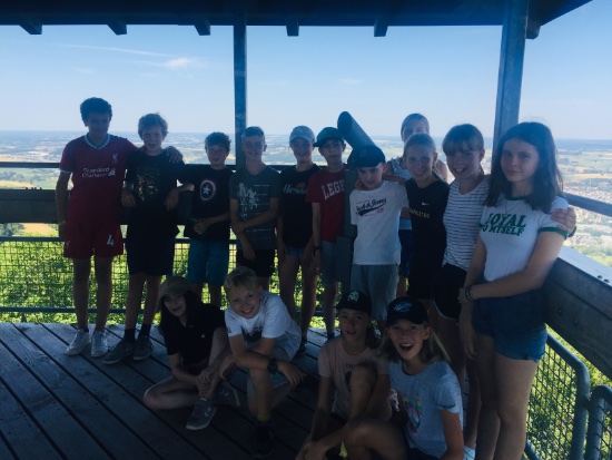 Einige Schülerinnen und Schüler waren sehr schnell wieder fit und liefen sehr bald die vielen Treppenstufen des Aalbäumle hoch, denn dieser ist kein kleiner Baum wie der Name vermuten lässt (und manch Schüler angenommen hat 😊), sondern eine Aussichtsplattform. Doch die Anstrengung hat sich gelohnt: Die Aussicht über Aalen und die Schwäbische Alb war fantastisch.