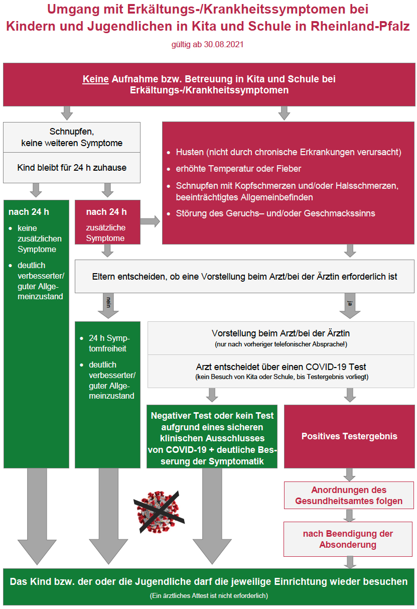 Zum Start des neuen Schuljahres wurde das Merkblatt zum Umgang mit Erkältungssymptomen aktualisiert. Die darin enthaltenen Regelungen gelten - unabhängig davon, ob sie bereits genesen oder geimpft sind - für alle Kinder/Jugendlichen.