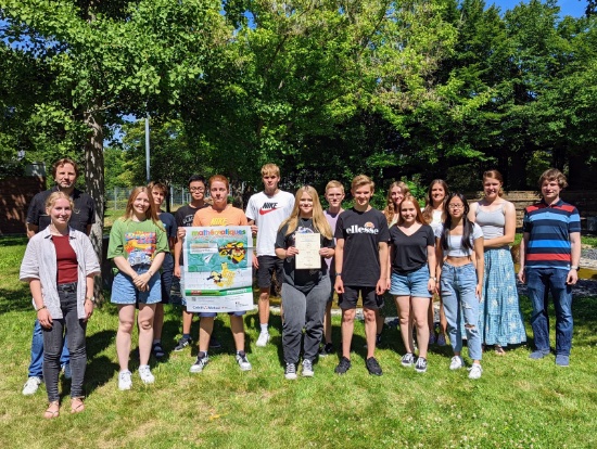 Lang mussten die einzelnen Klassen und Kurse auf ihre Ergebnisse warten und auf ein gutes Abschneiden hoffen. Jetzt kam der lang ersehnte Brief im Sekretariat an mit der Bekanntgabe der Preisträger und den Urkunden der Gewinner. Die Schülerinnen und Schüler des Kurses 11MA4 von Herrn Heinzler freuten sich über einen ersten Platz und ein Preisgeld von 150 Euro, die Klasse 10b von Herrn Heinzler über einen zweiten Platz und ein Preisgeld von 100 Euro. Herzlichen Glückwunsch!