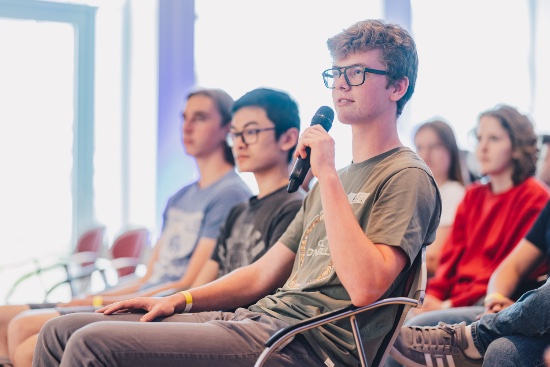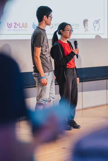 Nach den Workshops begaben sich alle wieder zurück in den Saal und stellten ihre Workshops vor. Die Schülerinnen und Schüler erzählten davon, was sie in den einzelnen Workshops gemacht und gelernt haben.