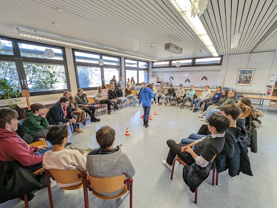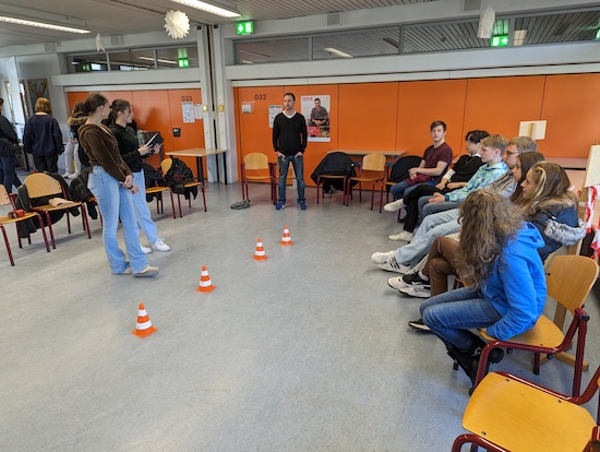 Im Februar fand für die 9. Klassen an verschiedenen Freitagen ein Parcours zum Thema Cannabis statt. Ziel des Parcours war es, den SchülerInnen die Auswirkungen von Cannabis auf Körper und Psyche näherzubringen. Der Parcours bestand aus verschiedenen Stationen, die von geschulten SchülerInnen der MSS 11 betreut wurden und den 9. KlässlerInnen die Möglichkeit gaben, ihr Wissen zum Thema Cannabis zu erweitern. Eine Station beschäftigte sich unter anderem mit Hintergrundinformationen zu den Inhaltsstoffen und den körperlichen und psychischen Folgen, die der Konsum haben kann. An weiteren Stationen wurden unter anderem die langfristigen Auswirkungen des Cannabis-Konsums auf Biografien sowie die rechtlichen Folgen des Konsums thematisiert.