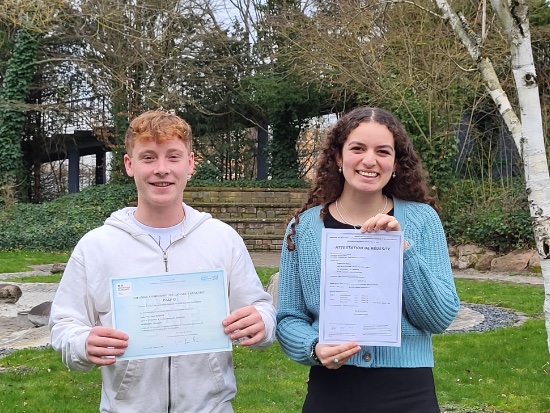 Besonders stolz sind wir auf Kenza Cherfouf und Émile Riether aus der MSS 13, die ihren schulischen Spracherwerb im Fach Französisch nach intensiver Vorbereitung mit dem DALF-Zertifikat C1 krönten.