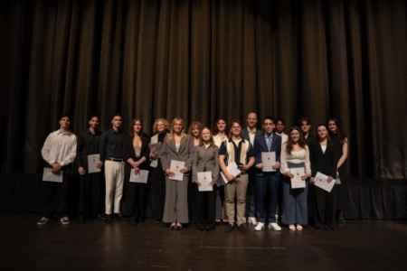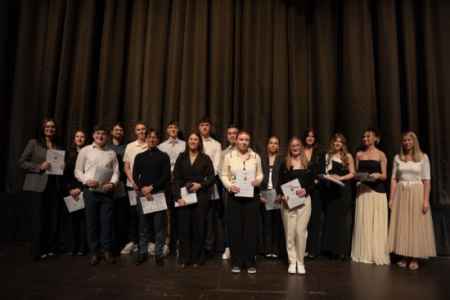 Musikalisch mitreißend wurde die Feierstunde durch die Big Band unter der Leitung von Markus Metz mit „Livin´ on a prayer“ eröffnet, später folgte „Seven nation army“ mit einem beeindruckenden Saxophon-Solo von Samuel Becker (MSS 13). Auch das Streichorchester, geleitet von Barbara Müller, bereicherte den Abend mit der „Music from La La Land“. Nicht nur den Schlusspunkt des Abends, sondern auch den musikalischen Höhepunkt bot die Perfomance von Jakob Weingärtner (Gesang und Gitarre) und Annika Schmidt (Piano), die, stellvertrend für den Musik-Grundkurs, den selbstgeschriebenen und -komponierten Song „Was uns bleibt“ darboten. Nicht nur Fachlehrer Fabian Strahl, sondern das gesamte Publikum zeigte sich emotional bewegt und ergriffen – der würdige Abschluss eines besonderen Abends.