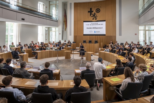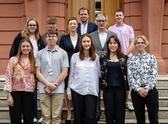 Nach zahlreichen Preisen in den vergangenen Jahren feierte die Arbeitsgemeinschaft „Politische Bildung“ jüngst ihren nächsten Erfolg: Bei „Mitgedacht – mitgemacht“, dem Schüler- und Jugendwettbewerb des Landtages Rheinland-Pfalz in Zusammenarbeit mit der Landeszentrale für politische Bildung, räumten Charlotte Funk (10c), Julia Griesbeck (10c), Mariella Haas (10c), Steffen Steeg (10c), Torben Weber (10c), Jarno Werling (10c), Joey Baumann (MSS 11), Amaya Hoffmann (MSS 12) und Marietta Wronka (MSS 12) den 1. Preis in der Kategorie „Gymnasium und Integrierte Gesamtschulen, Sekundarstufe II“ ab.