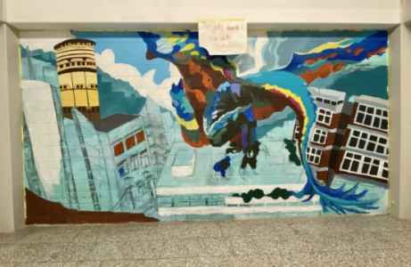 Seit Anfang 2024 haben wir am Wandgemälde gearbeitet und haben es nun geschafft. Nach eineinhalb Jahren haben wir es endlich fertiggestellt. Bis dahin war es aber ein langer Weg. Dieser begann mit den ersten Entwürfen, von denen einer ausgewählt wurde, welcher weiter ausgearbeitet und verfeinert wurde. Dabei steckten wir viel Liebe ins Detail, was zu diesem beeindruckenden Wandgemälde führte.