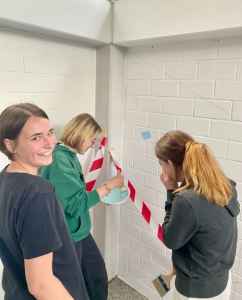 Immer wieder traf sich die AG, auch an Feiertagen, in den Weihnachtsferien, in Freistunden, um weiterzuarbeiten. Gemalt haben wir mit Acrylfarben. Auch wurden wir von einigen anderen kunstbegeisterten Schülerinnen unterstützt. Nach und nach kamen mehr Farben und Details dazu, die am Ende dieses Wunderwerk ergaben. Im Juni 2025 gaben wir unserem Bild den letzten Feinschliff, fügten die letzten Pinselstriche hinzu und alle signierten stolz das Kunstwerk.