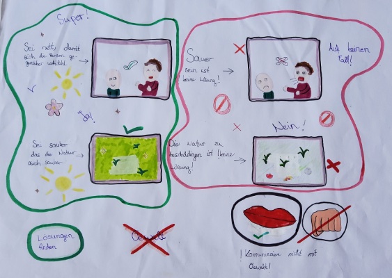 Zum Ende des vergangenen Schuljahres beschäftigten sich die Schülerinnen und Schüler der aktuellen Ethik-Gruppe 06a/d/g mit der Frage, wie man auf einen guten Umgang miteinander hinweisen könnte. Sie gestalteten dazu kleine Plakate, die zur Zeit im Haupttrakt der Schule in einer kleinen Auswahl zu sehen sind.