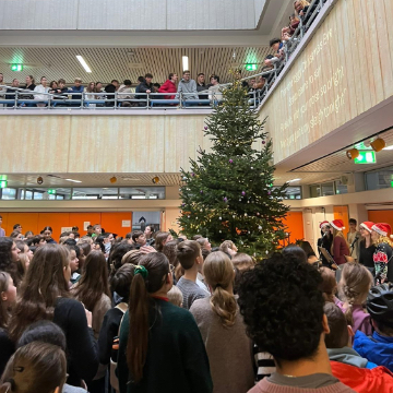 - Zudem hoffen wir, dass euch auch der rund 5 Meter hohe Weihnachtsbaum im Foyer, der in diesem Jahr größer war als je zuvor, gefallen hat.