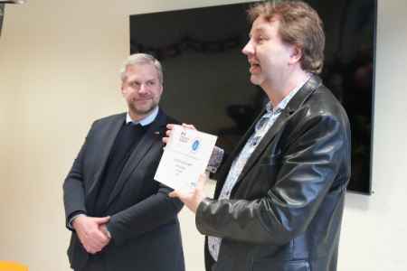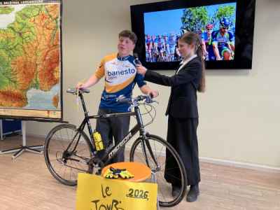 Begonnen und beschlossen wurde die Feier mit Stücken von Frédéric Chopin, dargeboten von Giao Le Van am E-Piano. In seiner Begrüßung verwies Dr. Hauptmann auf die langjährige Tradition des Bili-Unterrichts am EGW und auf dessen Ziel: gemeinsames Verstehen und Begreifen kultureller Gemeinsamkeiten. Landrat Martin Brandl bedauerte zwar seine eingerosteten Französischkenntnisse, betonte aber gleichzeitig humorvoll die bestehenden pfälzisch-frankophilen Verbindungen. Steffen Weiß warf ein kurzes Schlaglicht auf eine deutsch-französische Vergangenheit, die einst geprägt war von Ressentiments gegenüber dem „Erzfeind“ jenseits der nahen Grenze. Dabei, so der Wörther Bürgermeister, sei es Franzosen und Deutschen gelungen, in den Nachkriegsjahrzehnten Vorurteile ab- und Freundschaften aufzubauen, die in politisch unsicheren Zeiten unerlässlich für ein prosperierendes Europa sind. Dr. Oebel, Ministerialdirektor des Bildungsministeriums, fasste das heutige deutsch-französische Verhältnis treffend zusammen: „Deutschland braucht Frankreich. Frankreich braucht Deutschland. Europa braucht Deutschland und Frankreich, Deutschland und Frankreich brauchen Europa.“ Stellvertretend für alle Französisch-Lehrerinnen des EGW legte Lucile Thoyer dar, „warum die, die den Preis bringen, auch wissen, warum sie ihn ans EGW bringen“. Im Stile einer Nachrichtensendung, gewürzt mit Ironie und Schalk, gewährte ein unter der Leitung von Anja Höfler und Amaya Hoffmann entstandenes Video Einblicke in die Themenbereiche, mit denen sich der Französisch- und der Bili-Unterricht tagtäglich auseinandersetzen. Schülerinnen und Schüler der 8. Klasse inszenierten eine Etappe der Tour de France am EGW, in der der französische Generalkonsul Nicolas Bergeret zum Etappensieger avancierte. Eben jener war extra aus Frankfurt angereist, um die Auszeichnung „Label FrancÉducation“ persönlich zu überreichen.