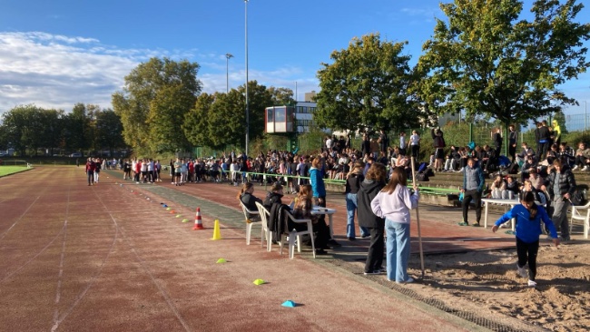 An beiden Tagen nahmen jeweils mehr als 500 Schülerinnen und Schüler an dem sportlichen Jahreshighlight statt, was für alle Beteiligten eine besondere Herausforderung ist. Allen Lehrerinnen und Lehrern sowie Helfern gilt ein großer Dank für den reibungslosen Ablauf. Die Beteiligten zeigten gute Laune sowie tolle Leistungen, welche im Anschluss für die Jahrgangsstufen 5 bis 7 im Plenum geehrt wurden. Aufgrund des Wettereinbruchs mussten die Ehrungen am Mittwochstermin entfallen.