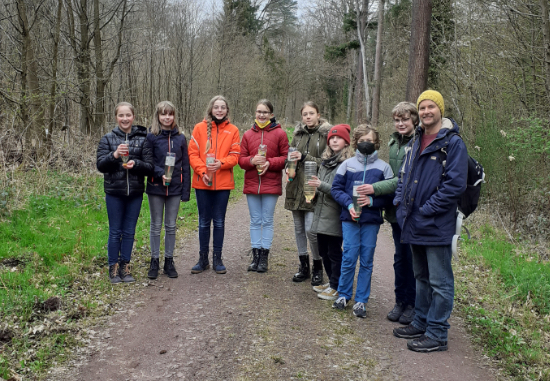 Am Dienstag, den 05.04.2022 haben die Baumpaten vom EGW ihre Bäume im Bienwald mit einem selbstkonstruierten Bewässerungssystem bewässert.